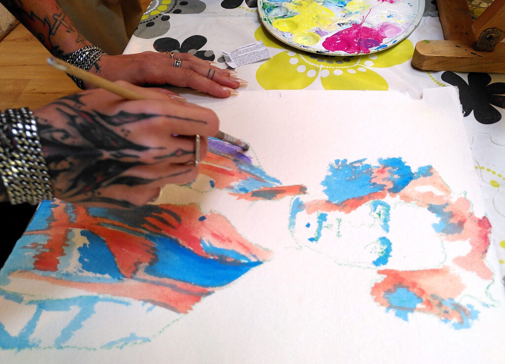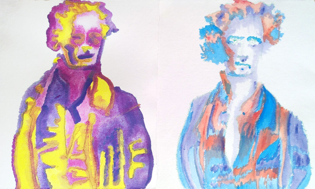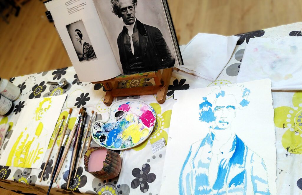 A partir d’un portrait noir et blanc, expérimentations de glacis sur sec et glacis sur mouillé.